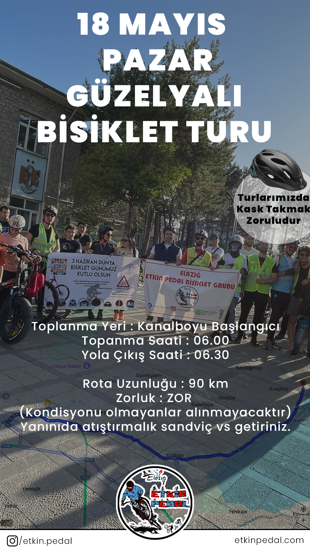 🗺️ Güzergâh: Şehir Hastanesi arka yolundan başlayıp Yurtbaşı üzerinden Güzelyalı’ya ulaşacağız. Gidiş-dönüş toplam 90 km sürecek keyifli ama zorlu bir parkur sizi bekliyor.